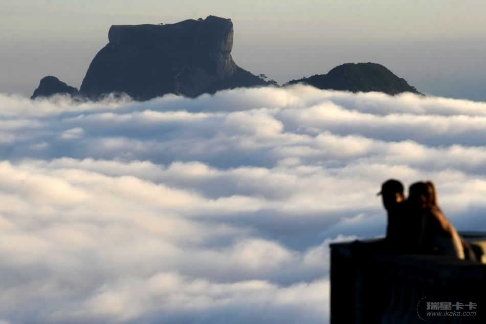 2010年9月28日,在巴西里约热内卢的科尔科瓦多山,游人在观赏云海奇观。