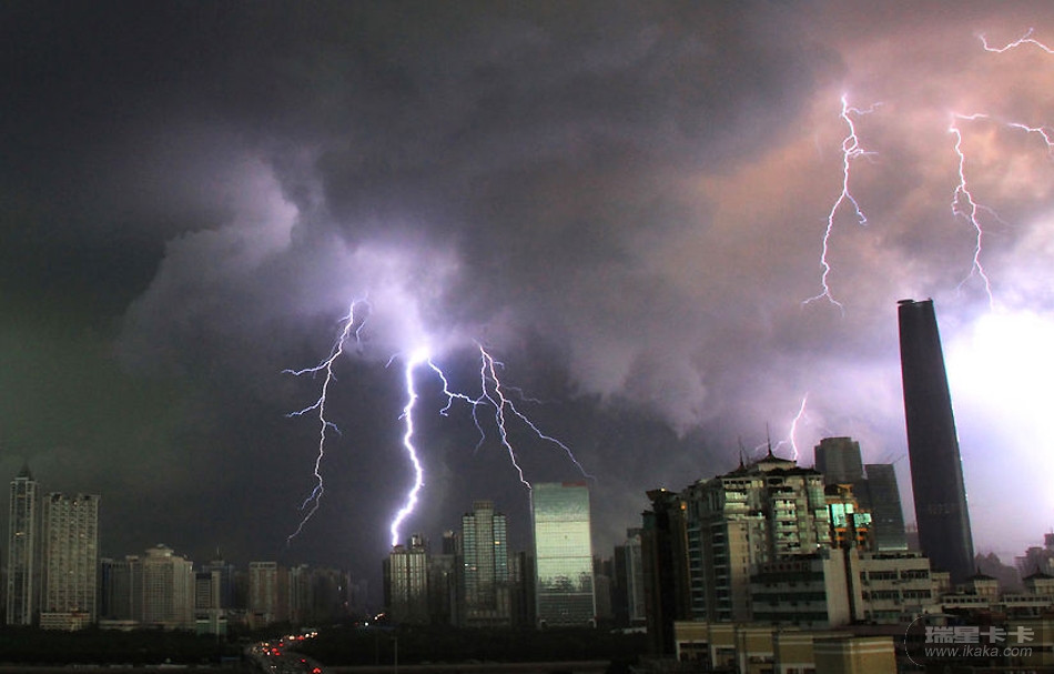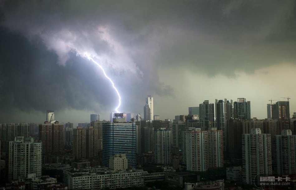6月21日16时许,数道闪电划过广州市区上空。