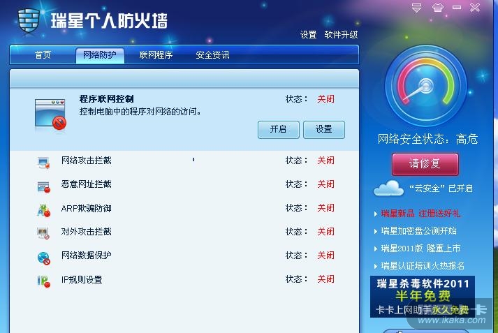 瑞星个人防火墙2011