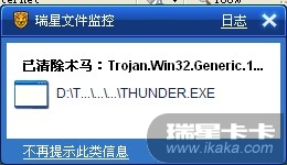 第一次是我要下载的时候弹出来,我以为是迅雷用久了中毒了,就让瑞星杀了迅雷。然后我就从迅雷官网下了个安装程序再装,你女良的,又给我杀了,你女马你瑞星有本事出个下载软件啊,不让用迅雷怎么自己不出啊