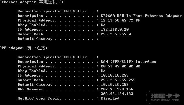 这是我没使用路由器用宽带拨号正常上网时的IP参数