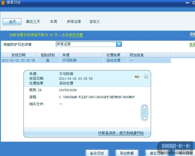 本机装瑞星杀毒2011和360安全卫士7.7版本 刚要开360的游戏优化器 瑞星的木马防御就拦截了安全卫士