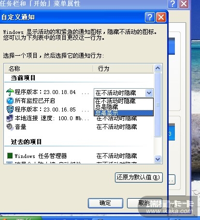 我的电脑最近右下角很多图标看不到了,是不是图中'过去的项目'问题啊?我应该如何修改??