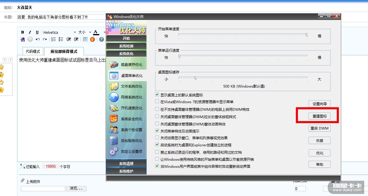 使用优化大师重建桌面图标试试图标是否马上出来,如果仍不显示请跟帖反馈。