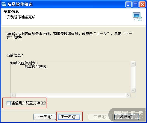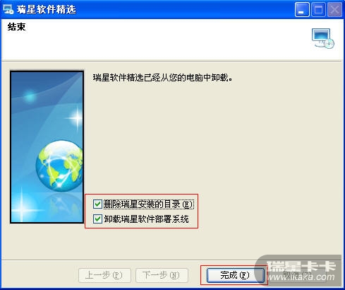 最后,记得给“删除瑞星安装的目录”的选项打钩,点“完成”。