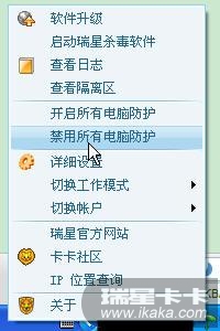 设置好后,打开瑞星杀毒软件的所有监控,具体参见第1幅图。