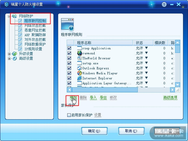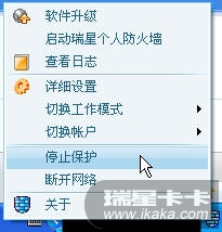 设置好后,启动瑞星个人防火墙的保护,具体参见第二种情况的第1幅图。
