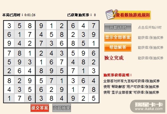 用IE,答对之后,显示你获得了9张抽奖券,界面就不动了!
