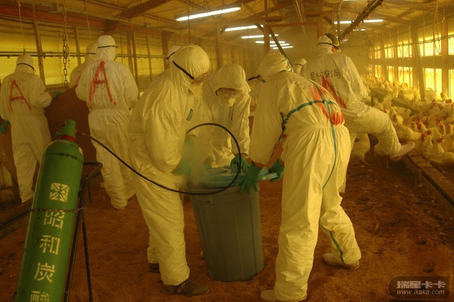 1月24日,在日本宫崎县的一家出现高致病性禽流感疫情的养鸡场,身着防护服的工人正在转移被屠宰的鸡。宫崎县政府23日宣布,已确认该县新富町一家养鸡场出现高致病性禽流感疫情,这是短短数天内宫崎县第二次报告禽流感疫情。