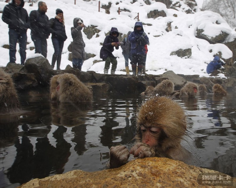 1月27日,日本本州岛长野的狝猴公园里,众多猕猴在此享受露天温泉。
