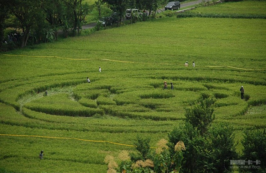 1月24日,印度尼西亚日惹特区一个村庄稻田里的怪圈。这个村庄23日突然出现类似“麦田怪圈”的神秘现象,引发各方猜测。出现“麦田怪圈”的村庄名叫约戈迪鲁托,位于日惹特区斯莱曼县。当地村民23日在村子附近的稻田中发现了一个由倒伏的稻株和完好稻株共同构成的复杂图案。图案总体呈圆形,直径约为70米,内部由规则的环形、扇形及一些不规则图形组成。这是印尼首次出现类似“麦田怪圈”的神秘现象。目前,印尼警方已经介入调查。