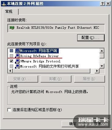 不能自动将ip堆栈绑定到网络适配器,无奈之下看看网卡的问题,发现启动的服务中,只要勾选Rising RfwNdis Driver和Rising rfwarp driver这两个服务,就会出现上述问题,取消勾选一切正常。