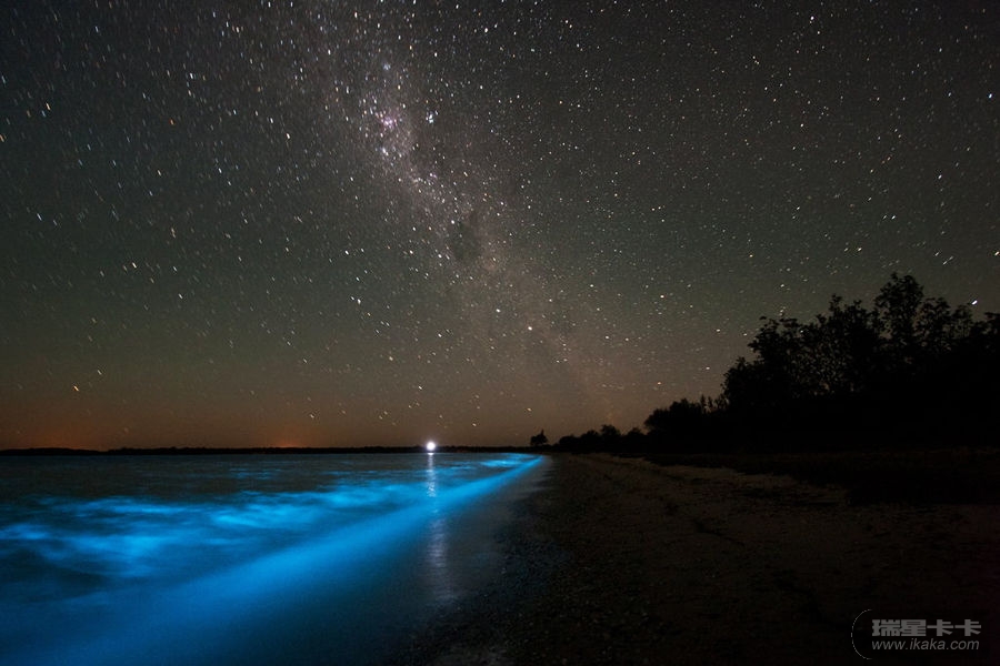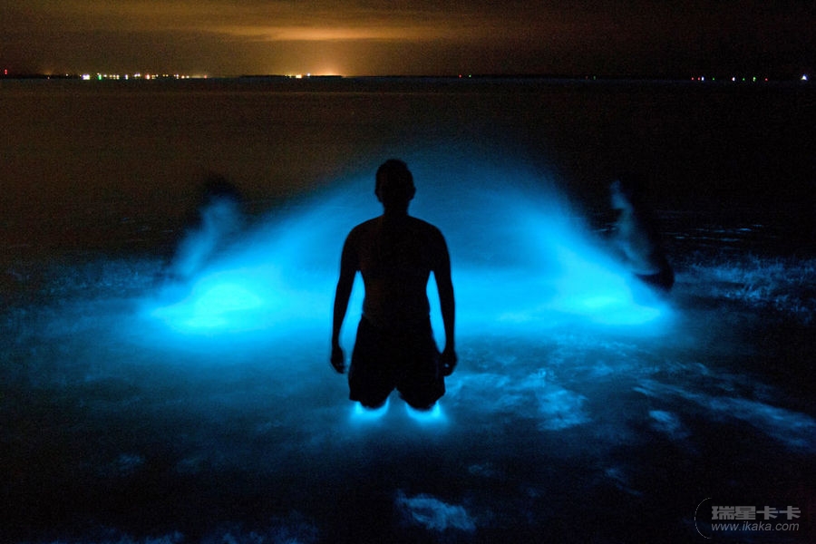 湖水如同被倾倒进荧光染料一样,竟发出幽蓝色的光芒。