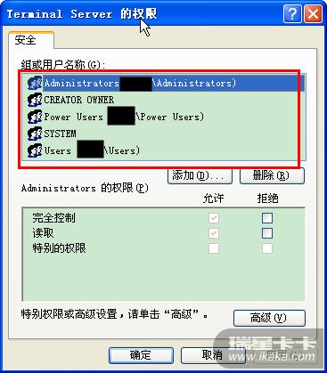 查看“Terminal Server”的权限是否有其他不明用户可以控制。