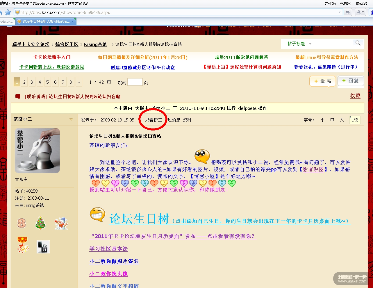 如图所示,在一个帖子中,一楼以及帖子中楼主所回帖子有个“