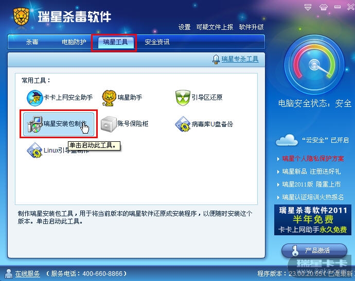 打开瑞星面板就可以看到,瑞星工具,安装包制作