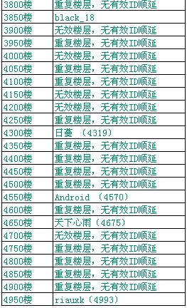 重复楼层,无有效ID顺延=已经获得过此种奖励,且其下顺延至下一获奖楼层,没有按规定回帖的未获奖ID