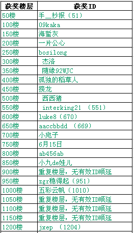 重复楼层,无有效ID顺延=已经获得过此种奖励,且其下顺延至下一获奖楼层,没有按规定回帖的未获奖ID