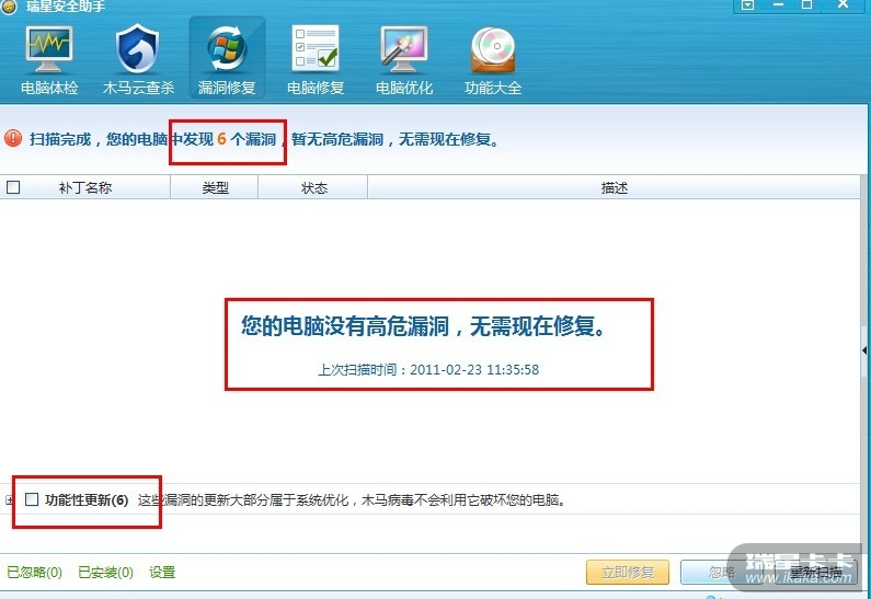 很难找到 最下面的那个更新 第一次的时候很迷茫 明明说有六个 虽然不用安装 但是总想看看 是哪六个 找了好久才发现在最下面 是不是构架可以向上放一下