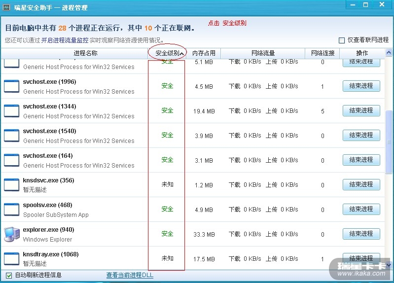点击如图所示 排序按钮 ,进程排序混乱!!!安全的 和不安全的 没分开!!!