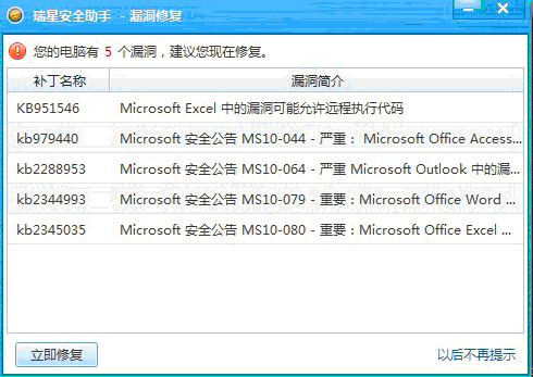 查了一下,瑞星提示的第一个补丁,KB951546,