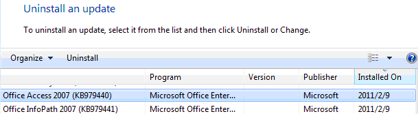 已经被Office 2007 SP2 取代第二个补丁,KB979440,已经于2011年2月9日安装在系统中了。