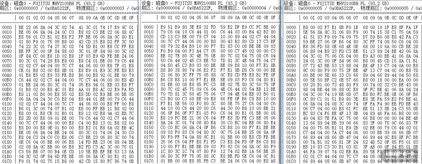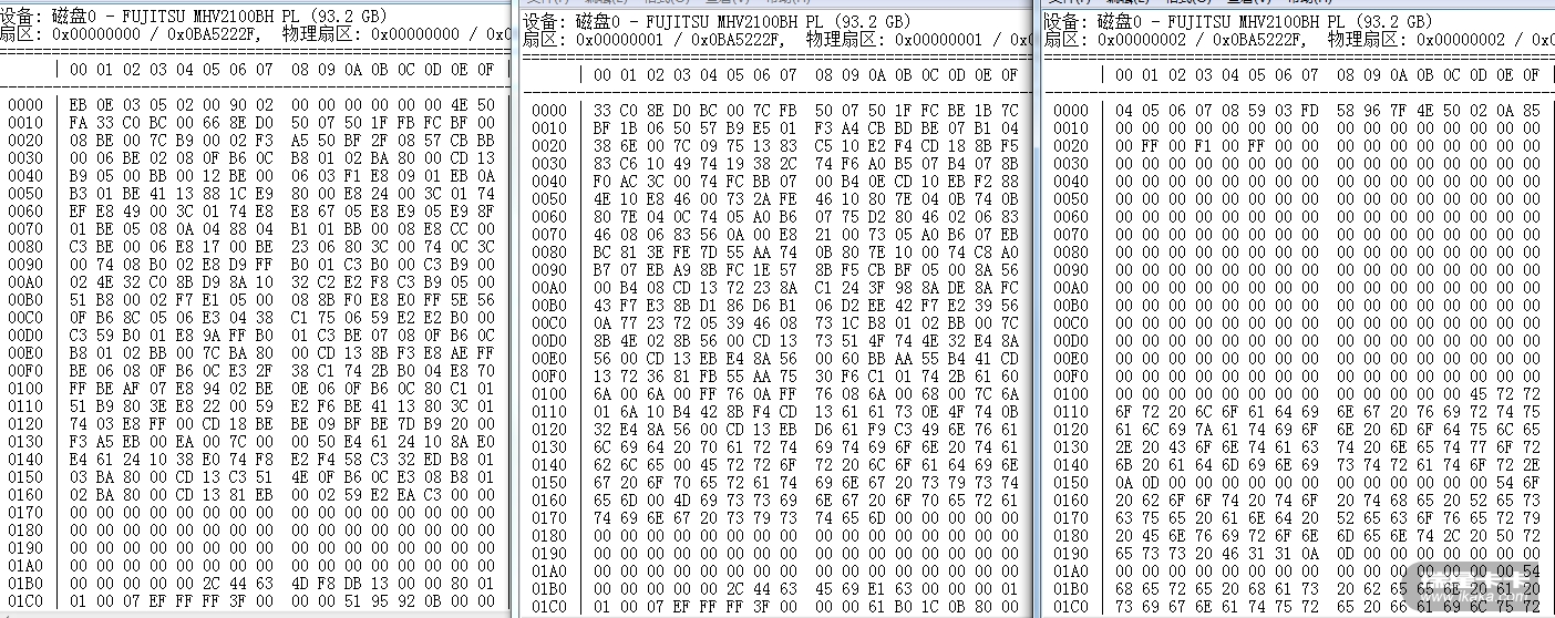 下面几个附图是Thinkpad T60p 1-8扇区的截图(用SectorEditor 查看时,这8个扇区编号为0-7):