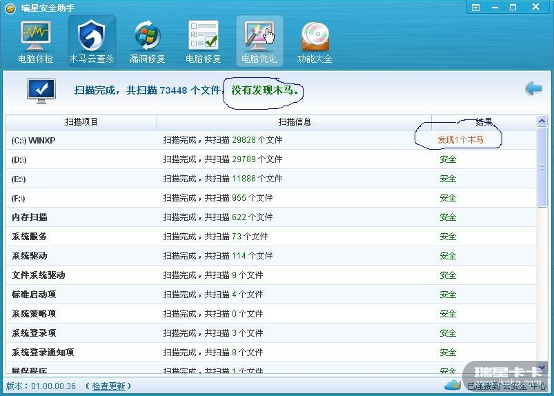 问题:木马云查杀结果显示不一致?上面显示没有发现木马,下面明细显示发现1个木马。