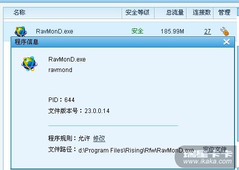 再更正一下,经过刚刚网上查询,说是因为防火墙的(RavMonD.exe)程序在过滤数据包,所以导致CPU占用大并且呱呱聊天室无法正常使用。