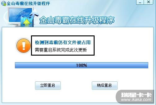 发现金山有些文件需要 重启后更新,而点击开 右下角的图标 显示图二