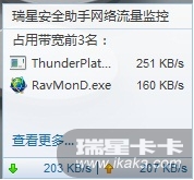 3还有就是总流量统计和总速度统计中能不能把瑞星防火墙过滤的数据和其他的下载数据分离开来,在360和金山中就会把瑞星防火墙过滤的数据一起统计起来,造成下载速度和流量远大于当前下载速度和流量,希望贵公司能改进