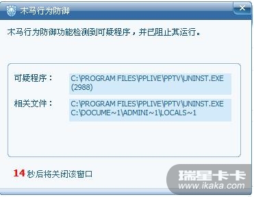 卸载最新版pplive时候,瑞星最新版中小企业网络版提示无法卸载,图片如下