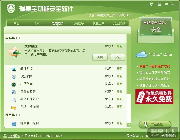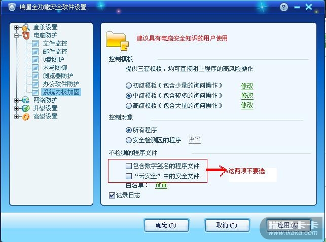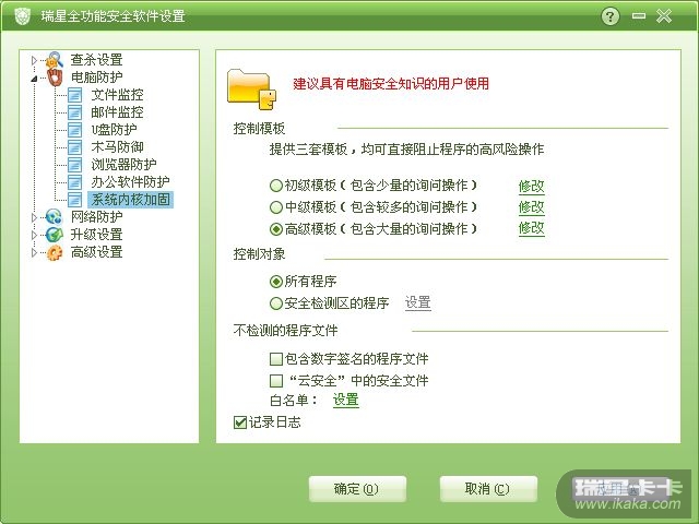 瑞星的系统内核加固确实经常抽风,我设置的初级模板,自己另外添加了一些自定义规则,相同的操作方式而瑞星有时报有时不报。瑞星的稳定真让人蛋疼,这种情况我也反映多次。。。