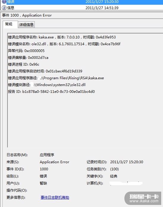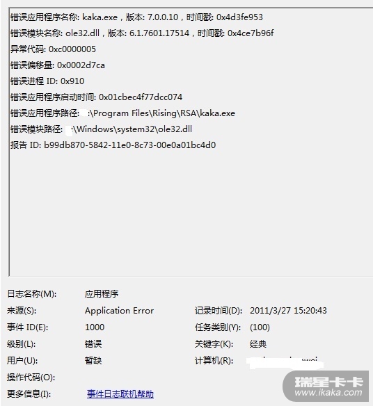 2、日志详情:KAKA.EXE进程不是非法就是停止的。