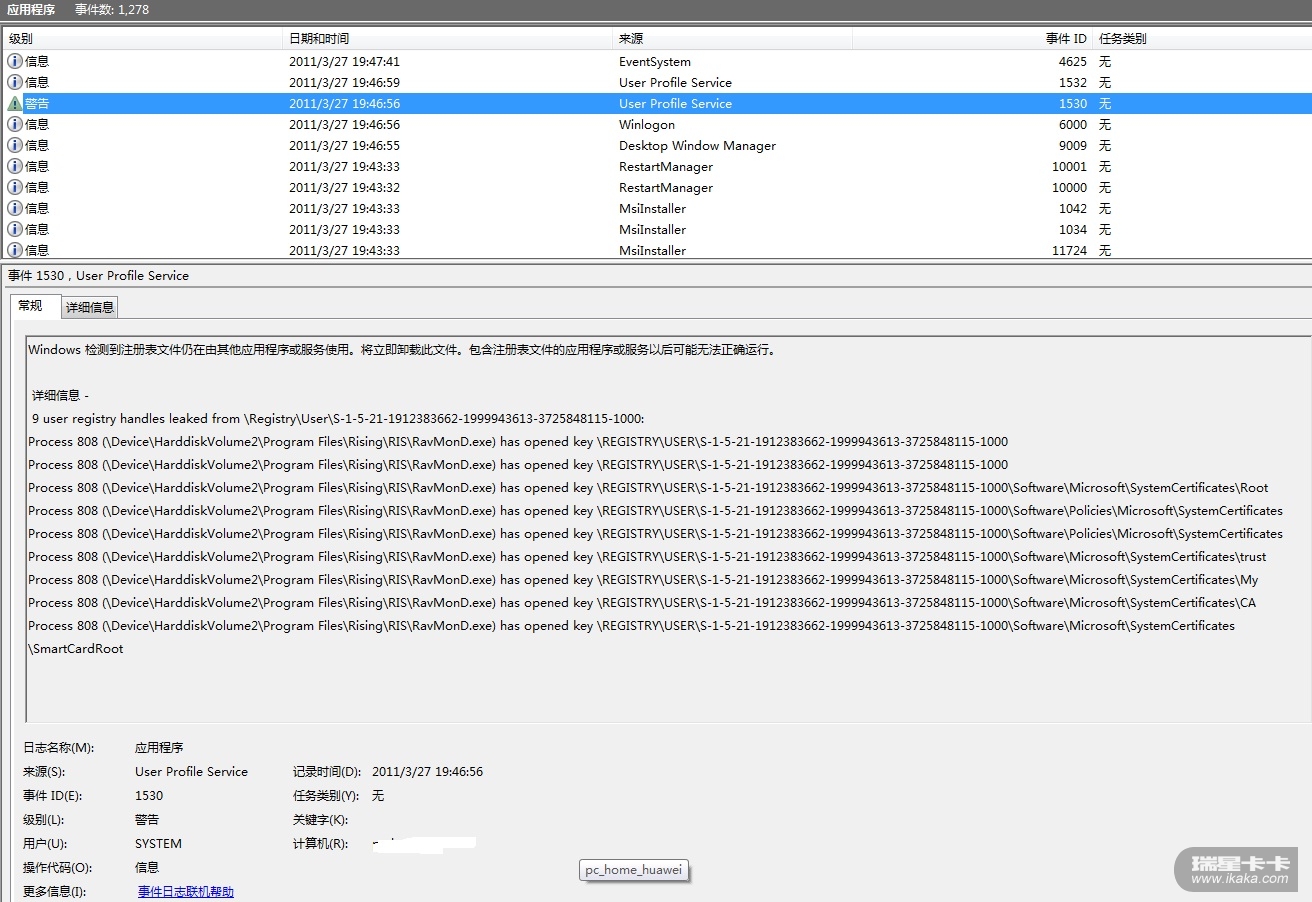 感觉就是这个 user profile service配置文件问题!就跟当初我说的 XP启动慢,卸载一个什么”加快 开关机速度的一个服务“,启动就OK了。