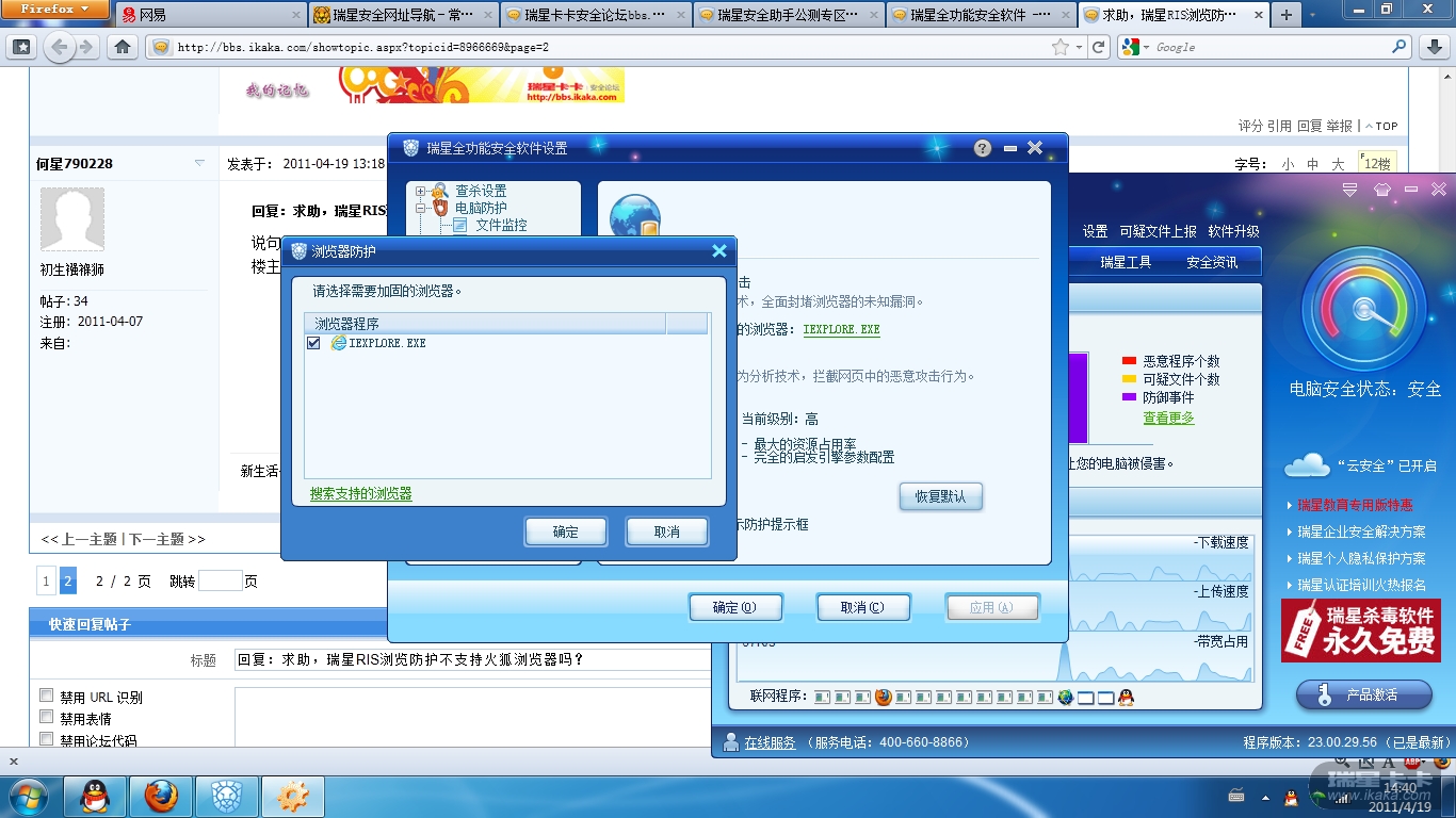 [求助] 求助,瑞星RIS浏览防护不支持火狐浏览器吗?