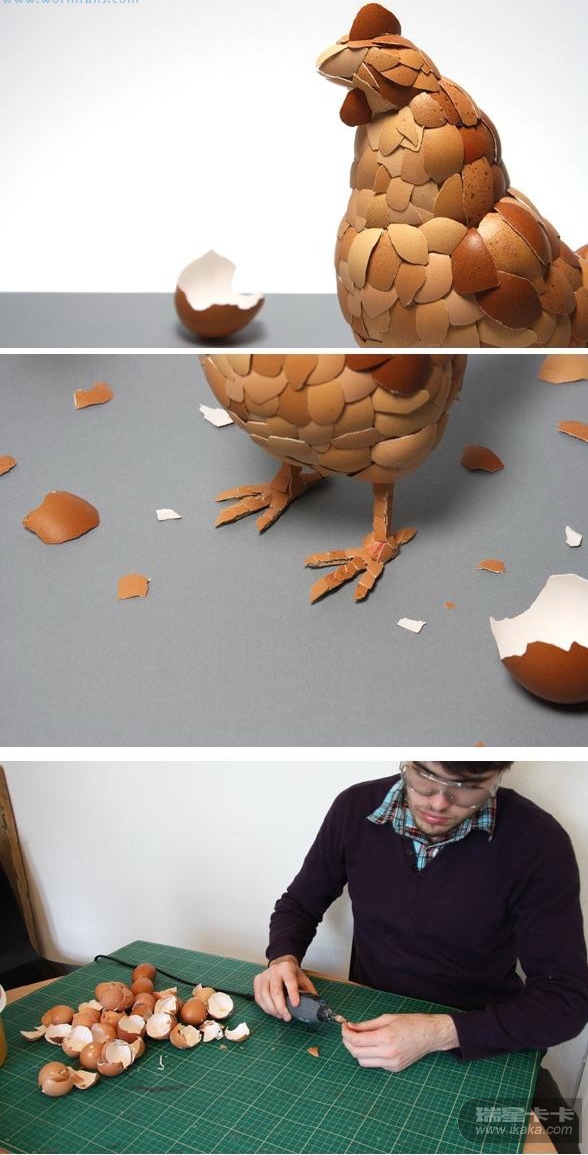 先有鸡还是先有蛋?这个问题咱先不谈。今天给大家展示的是蛋壳的艺术,作品来自设计师Kyle Bean。这个艺术作品栩栩如生,让人感觉生命又重新开始了。