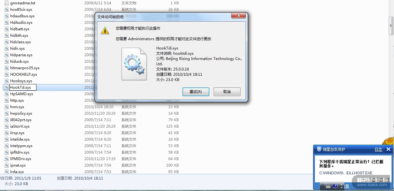 回复:Vista下运行UAC时死机(疑似瑞星造成)