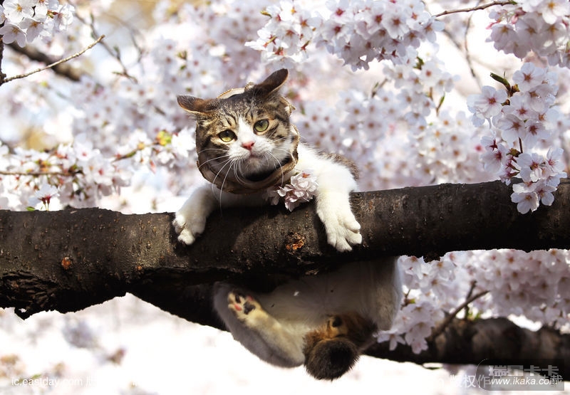 回复: 猫咪闲挂树枝赏樱花可爱无敌