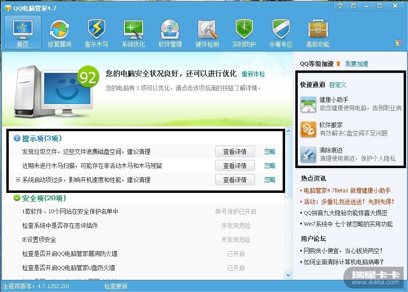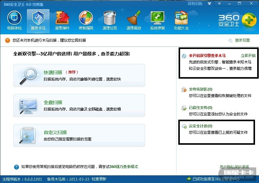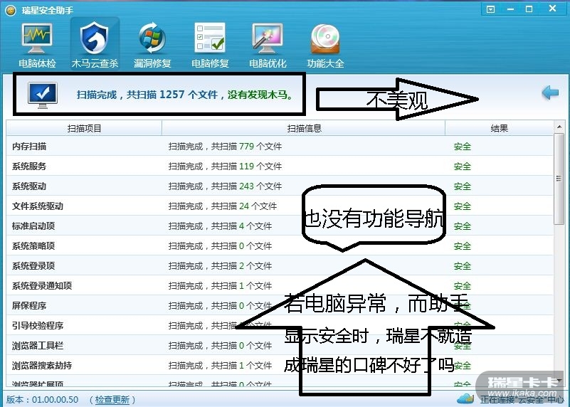 3、添加 体检设置,让用户设定是 每次打开都扫描还是。。。 ,建议瑞星在细节上做做功夫。