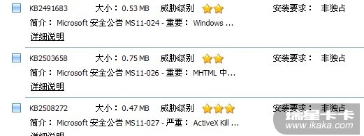 4.请查看控制面板/添加删除程序中是否有这些补丁
