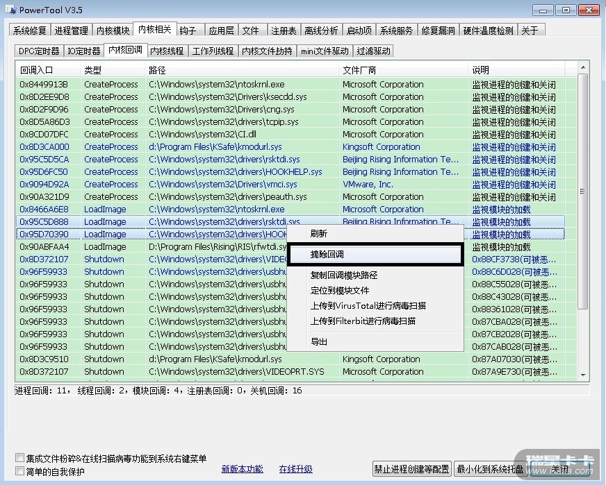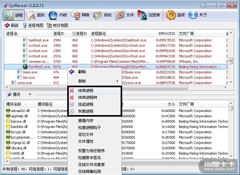 此操作能结束瑞星进程,望改进