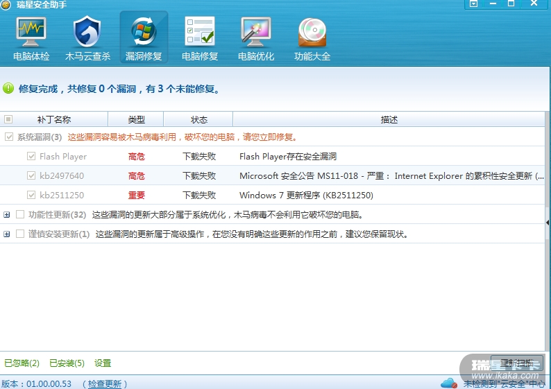 瑞星小助手明示:发现高危漏洞KB2483614,修复漏洞经多次扫描均告知下载失败。我的瑞星杀毒和小助手软件都是最新版本,为什么?速请求解决办法,急!急!!急!!!