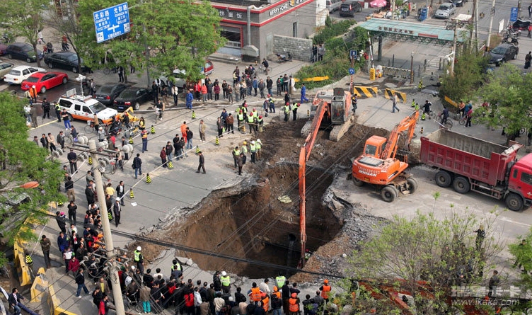 昨天(26日)凌晨,一辆载满沙土的斯太尔卡车在丰台区石榴庄路行驶过程中,路面突然塌陷,出现深约15米的坑洞。卡车陷入深坑,所幸车内两人被热心路人及时救出。根据现场实际情况,救援方决定将事故车留在坑内,就地填埋。