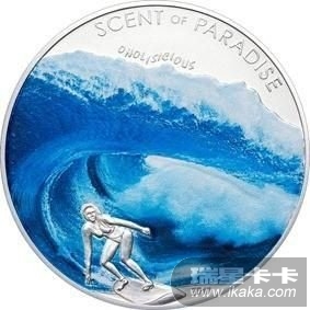 这枚硬币不仅外观设计好看,它还有自身的气味。如果你摩擦银币,你会闻到大海的味道。硬币上还刻着银质“美味”一词,是冲浪术语,指非常棒的东西。