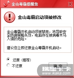 你看 金山的启动项 已没了 ,金山就报警 提示修复