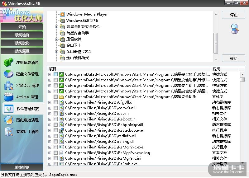 操作:用 windows优化大师的 智能模式 卸载了 瑞星助手;关闭瑞星监控运行了一个补丁文件  重启后 安装瑞星助手 并用助手的一键修复功能