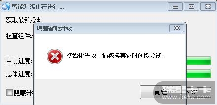 结果:瑞星 无法升级提示  初始化失败 ,修复失败 ----点击修复 没有任何反应