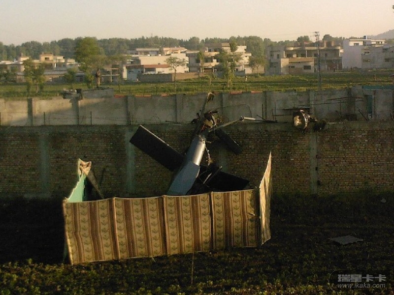 本·拉登在巴基斯坦阿伯塔巴德被击毙。在突袭过程中,美国一架直升机因出现故障而坠毁。美国官员说,这架飞机被机组人员和突击队毁掉,机组人员乘坐另一架直升机离开了这栋建筑。这是5月2日在巴基斯坦阿伯塔巴德拍摄的直升机的残骸。