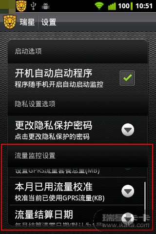 4、进入设置,流量监控设置这一栏,上下滑动不是整页滑动,只是滑动这一项里的选项,手感很不舒服,要小心翼翼的感觉;